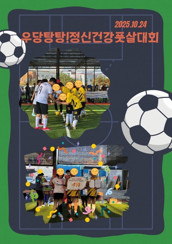 우당탕탕 정신장애 풋살대회 페이지 정보 작성자 관리자 댓글 0건 조회 147회 작성일 25-11-12 18:04 본문 정신장애 풋살대회날짜: 10월 24일 장소: 광주 서구 바로 풋살장 목록 다음글다음글제목입니다. 17.07.14 댓글목록 댓글목록 등록된 댓글이 없습니다.