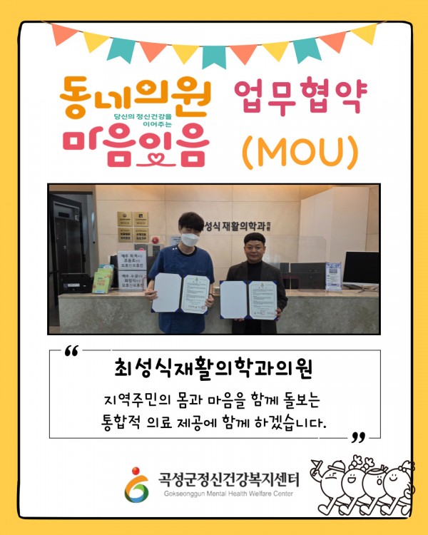 동네의원과 함께 지역주민의 정신건강증진을 위해 노력하겠습니다.