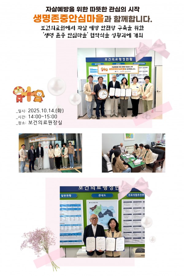 김형진 보건의료원장은 “이번 시범 사업을 통해 지역사회 자원과 사회 안전망을 구축하며 자살 예방의 기반을 마련했다”라며, “내년에는 정신건강 위험도가 높은 지역을 선정해 생명 존중 안심마을을 확대 조성할 것”이라고 말했습니다.